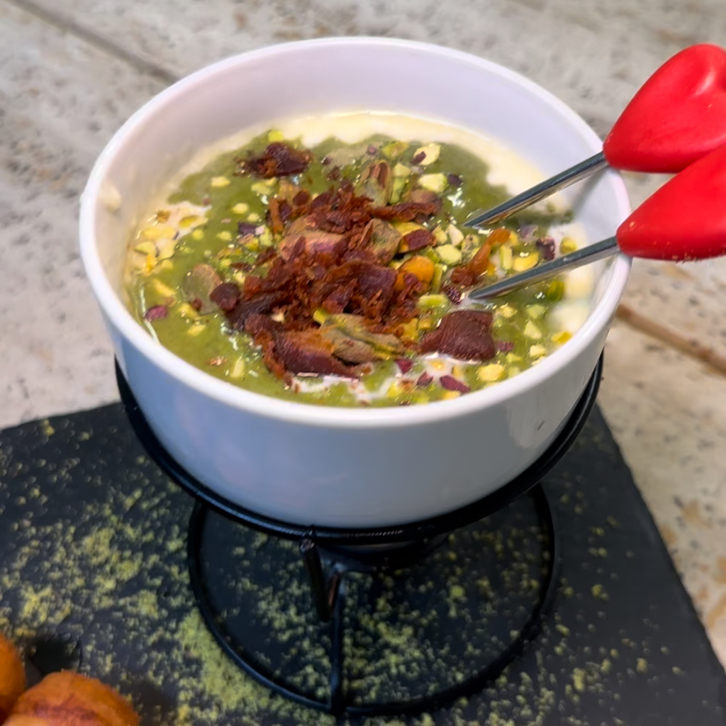 Burrata Croccante con Cuore Cremoso al Pistacchio (Allergeni: 1, 5, 7, 8)